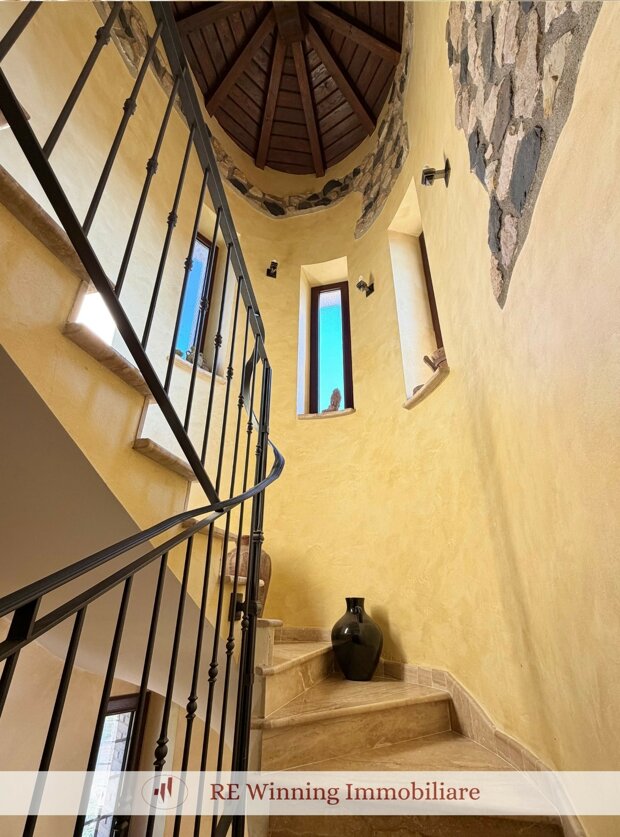 - 5 camere da letto (2 al piano terra, 3 al piano superiore);