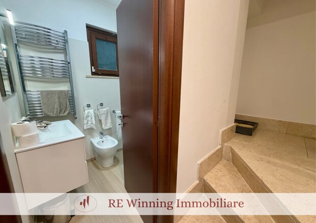 A completare la proprietà comodo box auto di 22 mq, collegato direttamente all’abitazione tramite ascensore con accesso al piano S1.