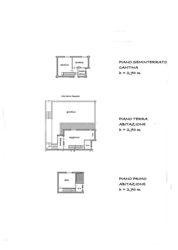 piano terra, soggiorno con angolo cottura e bagno di servizio. Salendo con una comoda scala si raggiunge il primo piano dove troviamo un’ampia camera matrimoniale con bagno padronale. Al piano seminterrato un ulteriore camera matrimoniale, una cameretta e un secondo bagno con accesso diretto tramite un portoncino blindato al box auto doppio di 25 mq.