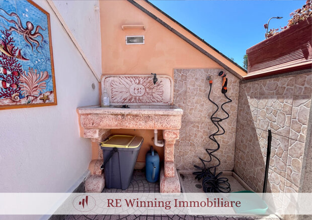 Tramite una scala si accede al primo piano, dove troviamo un terrazzino vivibile, dotato di lavatoio esterno, soggiorno con angolo cottura, bagno finestrato con box doccia, camera matrimoniale completa di armadio a muro e un ripostiglio esterno.