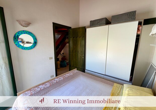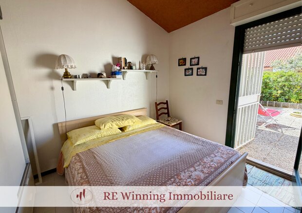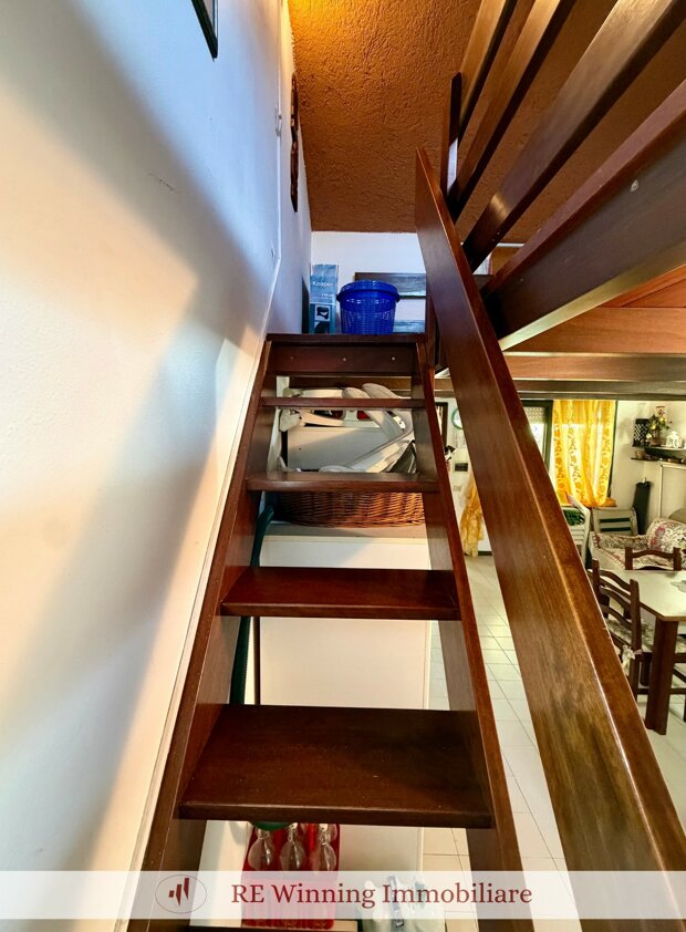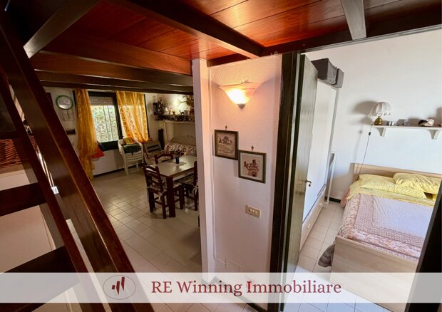 L’immobile è composto da soggiorno con angolo cottura, piccolo disimpegno, camera matrimoniale con accesso ad un secondo giardino pavimentato con ripostiglio annesso, bagno con box doccia e soppalco con ulteriori due posti letto.
